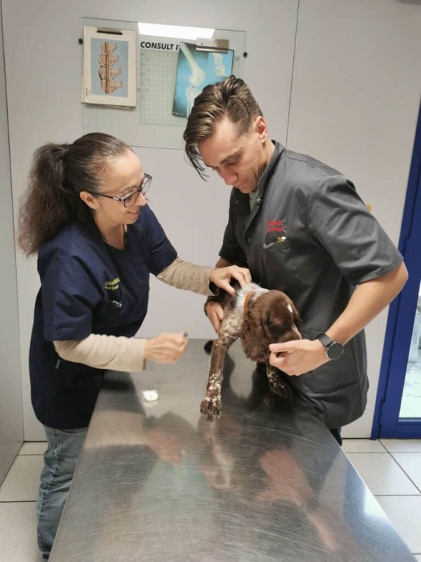 Nous sommes une équipe de 5 vétérinaires, de 5 ASV et d'une ASV en formation en alternance. Nous travaillons dans une structure de taille moyenne car, malgré notre nombre, nous tenons à préserver l'équilibre entre vie professionnelle et vie personnelle. Il nous semble en effet important de ménager des respirations dans ce métier prenant et parfois émotionnellement difficile, que ce soit pour nous ou pour nos salariés.