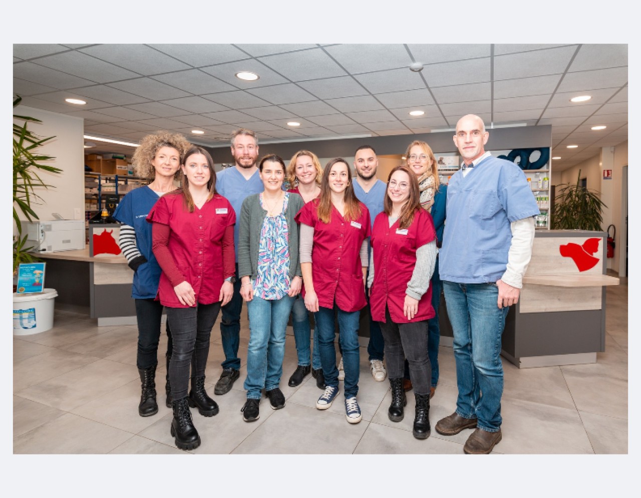 Présentation : Équipe de 5 vétérinaires, 1 laborantine et 5 ASV.