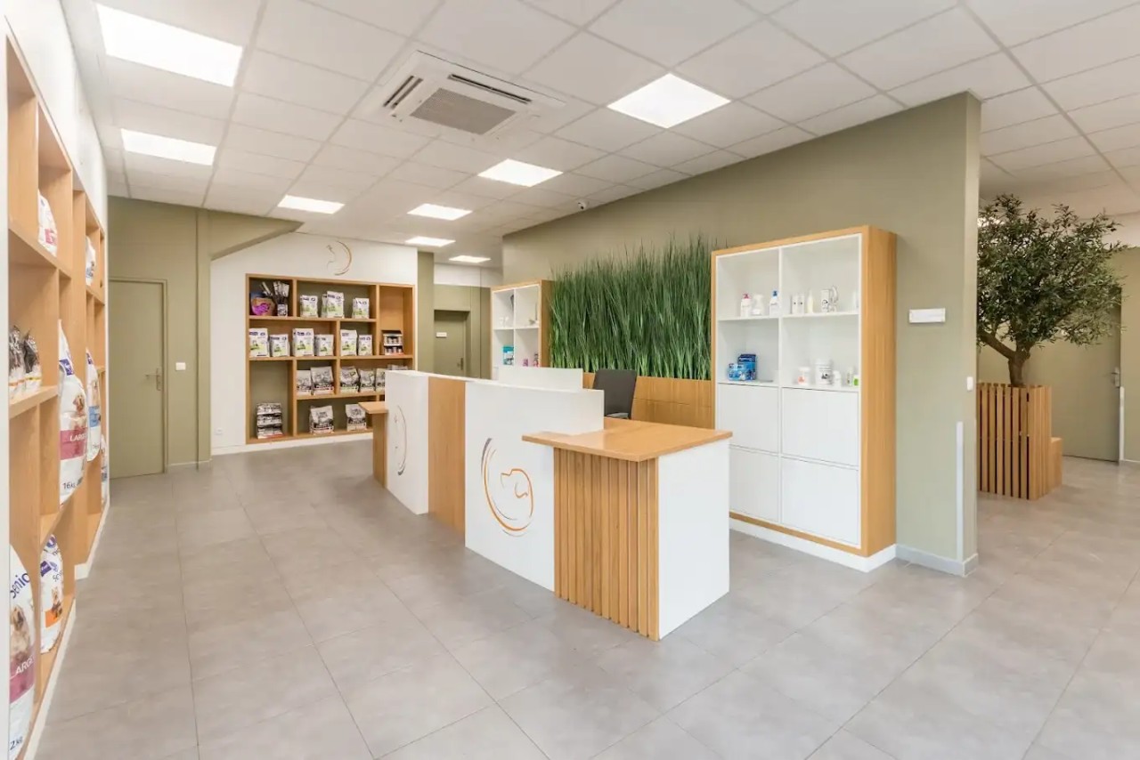 3 salles de consultation canine et 1 salle de consultation féline, chacune avec salle d’attente dédiée, pour garantir confort et sérénité aux patients comme à leurs propriétaires