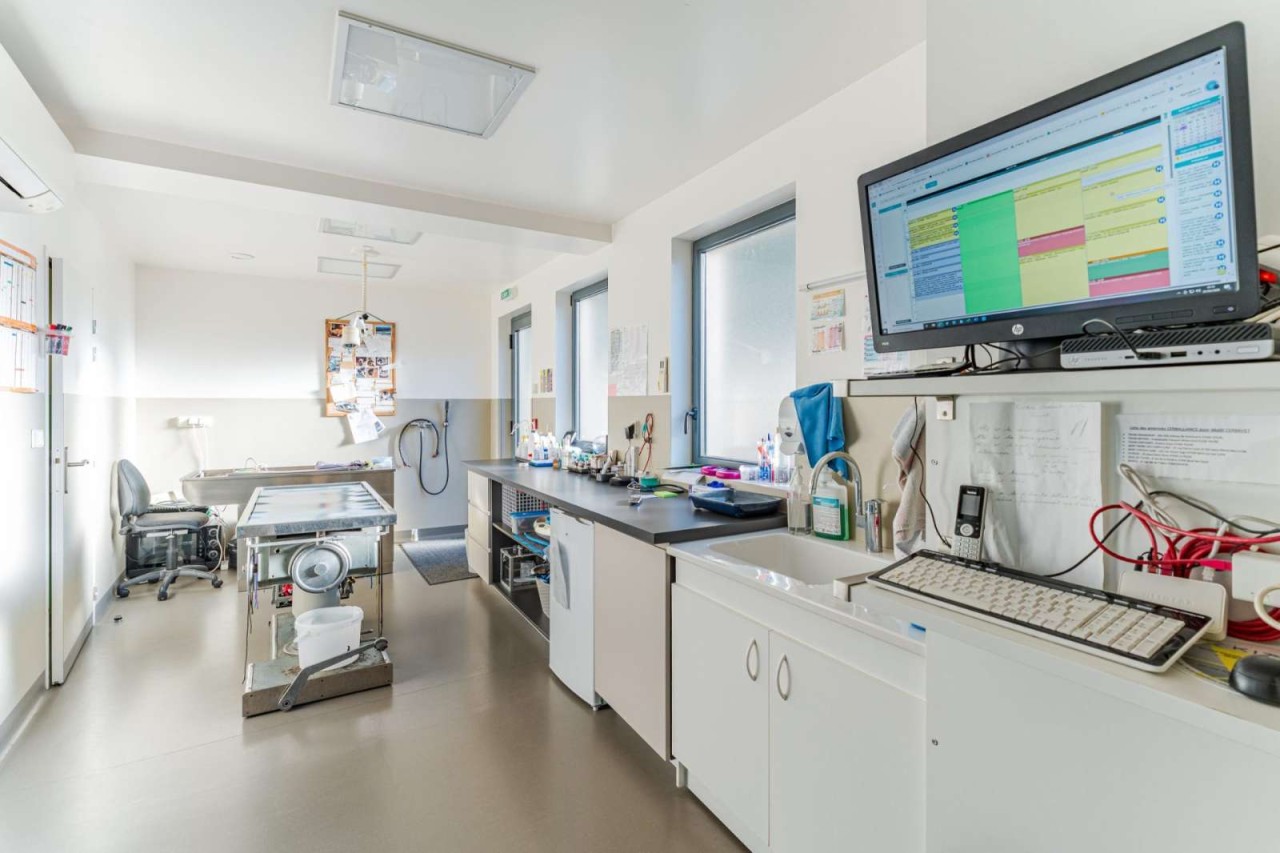 Équipement complet : plusieurs salles de consultation (3 à Tours / 4 à SPDC), radiographie, échographie et laboratoire Idexx
