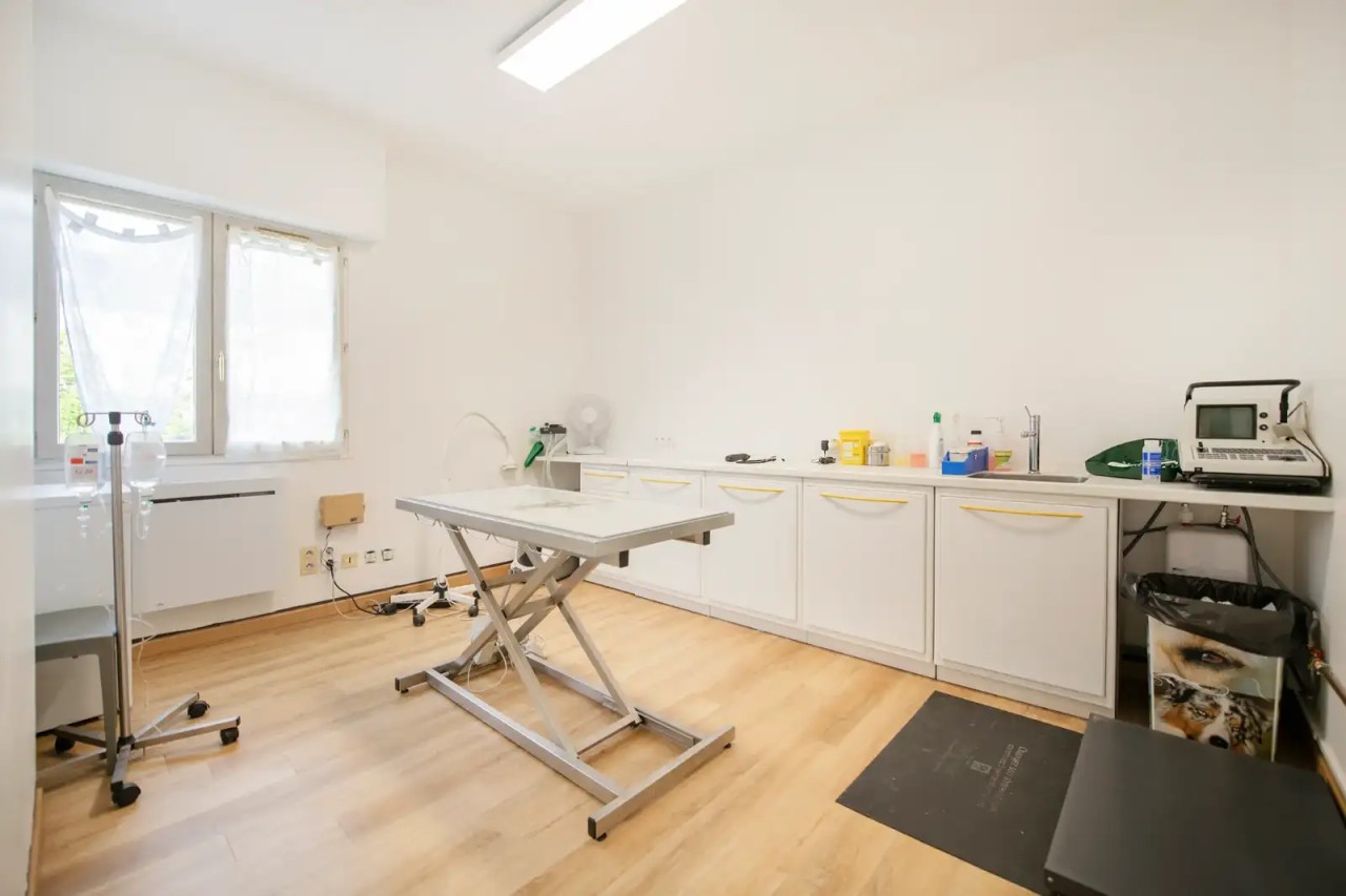 6 Equipements : 3 salles de consultation, 2 salles de chirurgie, laboratoire complet, chenil échographe, radio numérique, laboratoire complet, gazeuse