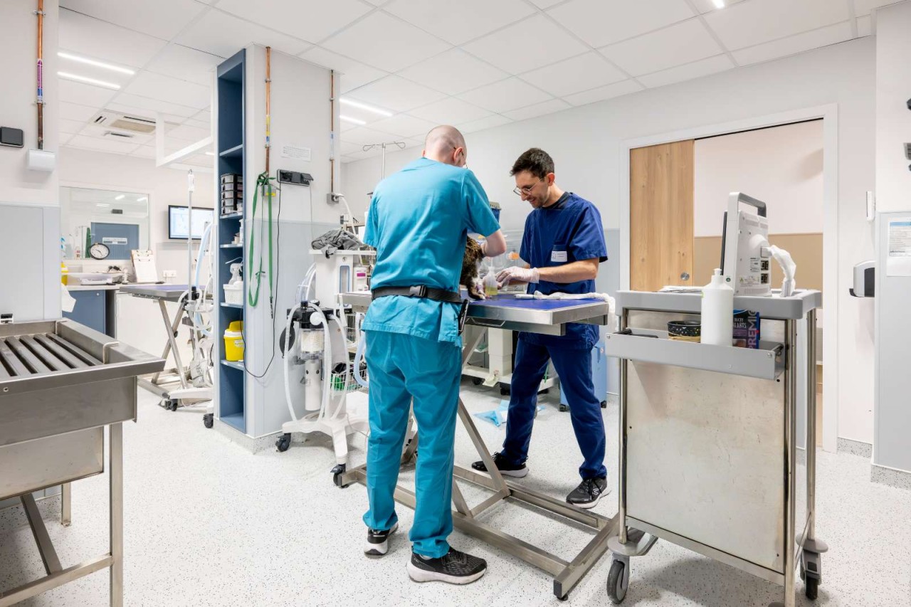Le service des Urgences & Soins continus, pilotée par le Dr Marina Gracia, dispose d'une équipe de jour (4 vétérinaires et 4 ASV) et d'une équipe de nuit ((4 vétérinaires et 4 ASV), accompagnées par 2 animaliers.