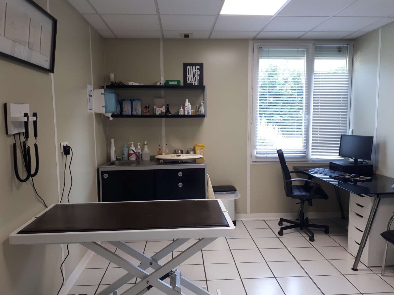 Nous avons également à notre disposition, une salle de repos/cafétaria bien utile pour l'indispensable café du matin avant lequel aucune tâche ne peut commencer (on a aussi des tisanes😉). Enfin, un bureau spacieux permettant à l'équipe vétérinaire d'échanger et d'effectuer leurs comptes rendus, appels ...