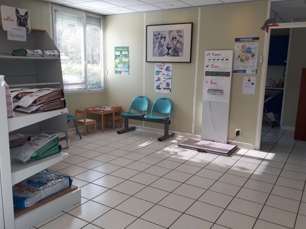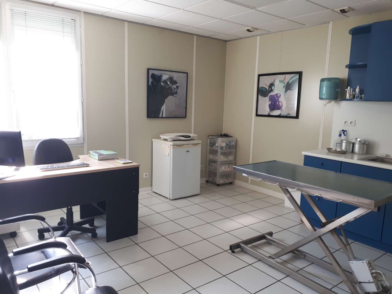 Nous disposons d’un grand espace d'accueil, une salle d’attente chat et une, chien. 3 Salles de consultations, une salle d'échographie, une salle de radiologie. Un laboratoire complet (catalyst idexx, procyte idexx, test de coagulation, microscope...). 2 salles de chirurgies avec gazeuse, monitoring, unité dentaire... et une grande salle de préparation (pratique pour effectuer prises de sang et autres examens complémentaires loin du regard anxieux des propriétaires. Un chenil chien, un chat et un contagieux.